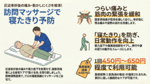 やよいマッサージ治療院では、日常動作を安全に行うための指導も含めた訪問マッサージを行っています。