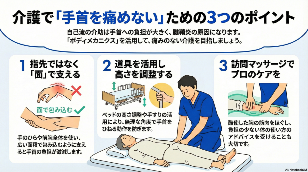 「手首の痛みをなんとかしたい」「安心して介護を続けたい」