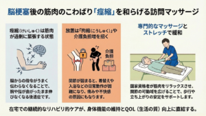 👉 脳梗塞の後遺症が心配なご家族へ|訪問リハビリマッサージでできること をご覧ください。